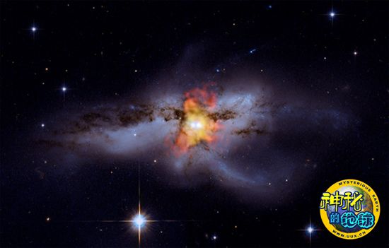这两个超大质量黑洞位于NGC 6240星系。NGC 6240距离地球约3亿光年远,位于蛇夫座,其实它是两个富含气体的螺旋星系正在“合并”的天体。几百万年前,这两个星系是分开的,相互在接近,进而开始合并。