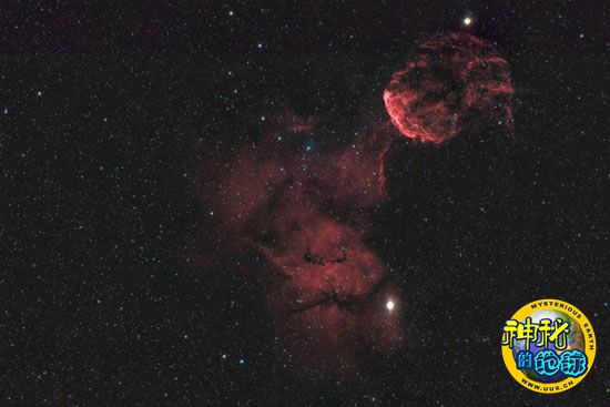 这张绚烂的照片显示的是水母星云。照片是天文发烧友梅尔-马丁借助SBIG STL-11000天文照相机和高桥5英寸折射望远镜在自家后院天文观测台拍摄的。梅尔-马丁的家位于亚利桑那州南部的图森市。据了解,这张照片的拍摄共耗费了3小时的曝光时间。