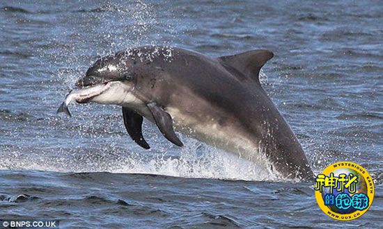 苏格兰摄影师阿利斯泰尔·坎普在马里湾抓拍到了两只海豚跃出水面争夺美食的瞬间,它们先是与猎物戏耍一番,最后才把它吃掉。