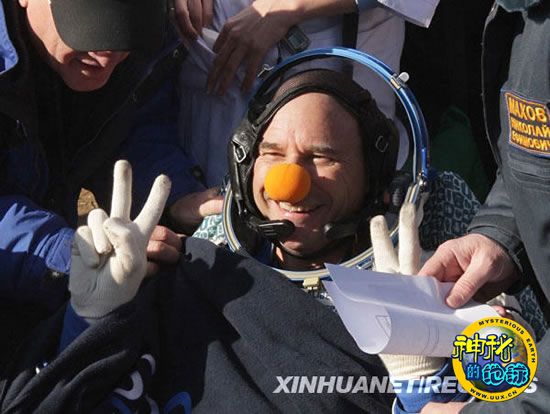 10月11日,加拿大太空游客盖·拉利伯特乘俄“联盟TMA-14”载人飞船返回地面后向人们致意。