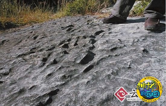 从昆向西南方向驱车两个多小时到达夕阳乡政府,路边随便问一个乡民:“师傅,知道恐龙脚印化石在哪?知道恐龙化石吗?”不管老少,他们都会热情地告诉记者:“当然知道,我们这是恐龙之乡,恐龙脚印漫山都有。”一位小夕阳村的大爷告诉记者,上个世纪八九十年代以前,他们上山放牛总会发现山石上有些奇怪的印迹,有的如鸡爪,还有些只是留下深深的印槽。当地村民把这些印迹称为“仙人脚印”或是“金鸡脚印”。这些印迹究竟是什么动物留下的?在当时,很多人觉得很神秘,直到1983年夕阳文物普查后,有关专家到此认定,这些奇怪脚印就是恐龙足迹化石,并在当地几个村发现类似足迹化石600余个。