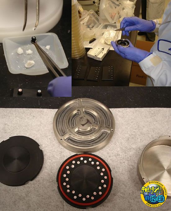 科学家正在往“biomodule”的冰球类的容器中添加样本