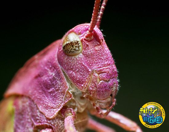 蚱蜢颜色一般都在绿色到棕色之间徘徊,虽然粉红色蚱蜢还是第一次见到,但这是自然产生的物种,并非变异或环境影响造成的。