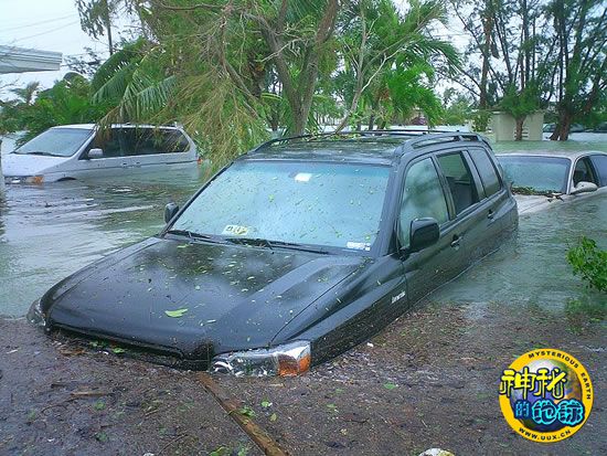 2005年10月,在美国佛罗里达州基韦斯特由飓风威尔玛风暴潮造成的洪灾。