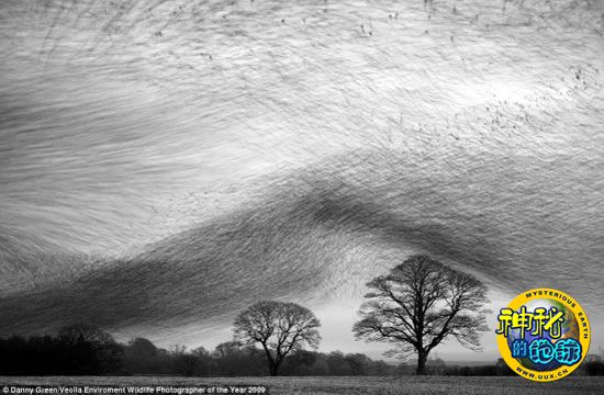 2009年威立雅环境及野生动物摄影比赛揭晓 来源: 神秘的地球 时间:2009年10月23日 14:12 6.椋鸟云 椋鸟云 第一眼看上去,这似乎是一张铅笔画。实际上,照片中这朵令人过目不忘的“黑云”隐藏着数千只星椋鸟。为了躲避一只前来掠夺的游隼,它们在慌乱中突然转向和俯冲。拍摄时,摄影师丹尼·格林采用慢快门速度,以突出飞行中的星椋鸟猝然下降的瞬间,由此产生的视觉效果可谓令人叹为观止。格林的这幅摄影作品无疑是在告诉人们,大自然才是最伟大的艺术家。 上一页1234567下一页 上一篇 下一篇
