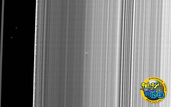 美国宇航局“卡西尼”号飞船拍摄的最新土星家族照片 来源: 神秘的地球 时间:2009年10月23日 14:43 15.新卫星在土星环上投下阴影 土星环的新卫星 2009年7月26日,在接近2009年8月土星的昼夜平分点时,“卡西尼”号拍摄到这张图片。从图片中可以看到,位于土星环B外部的一个小天体在这颗行星的光环上投下一道阴影。这颗新卫星位于距离土星环B最外边大约480公里的内部。人们通过它投下的阴影发现这个天体,它在土星环上投下41公里长的阴影。阴影的长度预示着这个天体可能位于土星环面上方大约200米的地方。如果这颗小卫星跟它周围的环物质一样,围绕同一条轨道运行,它的直径应该有400米。 1...上一页13141516171819202122...23下一页 上一篇 下一篇