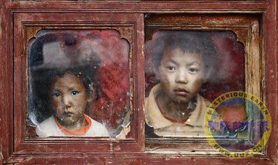 Tibetan children peer out a window of their house in a village near Tagong in eastern Tibet on a rainy day in September 2007.