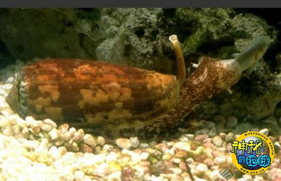 鸡心螺(又名“芋螺”)是很多贝壳收集者的“最爱”,最长只能长到23厘米左右,与其美丽的外壳一样出名的是它那毒性很强的毒液。绝大多数鸡心螺都分布在温暖的热带水域。尽管外表美丽,但鸡心螺是一种可怕的捕食者,齿舌十分尖利,当发现有猎物靠近时,它就将长管状的的喙伸向猎物,通过肌肉的收缩,将装满毒液的齿舌从喙里象子弹一样的射到猎物身上,毒液能够瞬间将小鱼麻痹,然后鸡心螺收起它的齿舌,将已被制服的猎物拖入口中。它们的毒液中含有神经毒素,可锁定特定的神经受体或通道等目标。