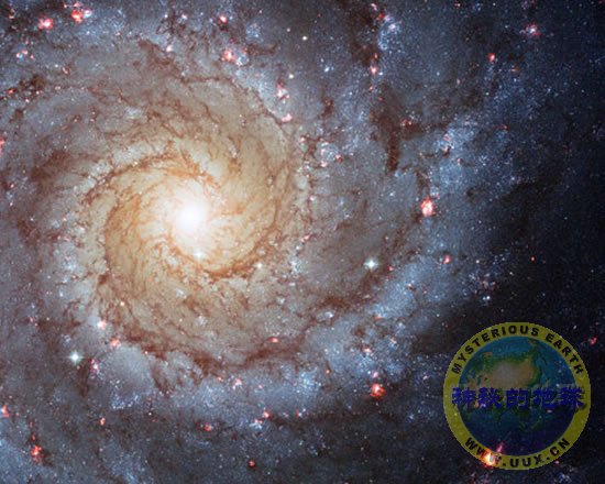 Earth observers see the spiral galaxy nearly face-on, which offers a perfect view of its dusty, symmetrical arms dotted with clusters of young stars (depicted above in blue). M74 lies about 32 million light-years away in the constellation PIsces.