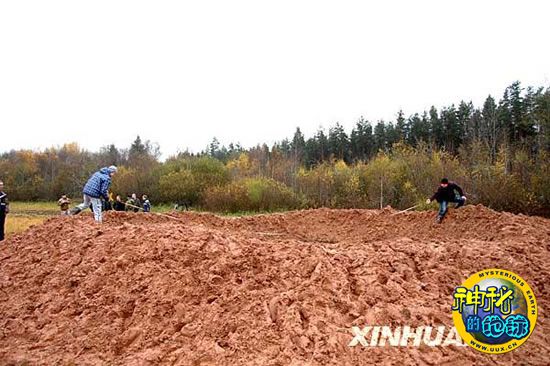 10月26日,在拉脱维亚东北部边境的马兹萨拉察镇(距首都里加约150公里),工作人员对所谓陨石撞地球后留下的“陨石坑”进行丈量。新华社记者杨德洪摄