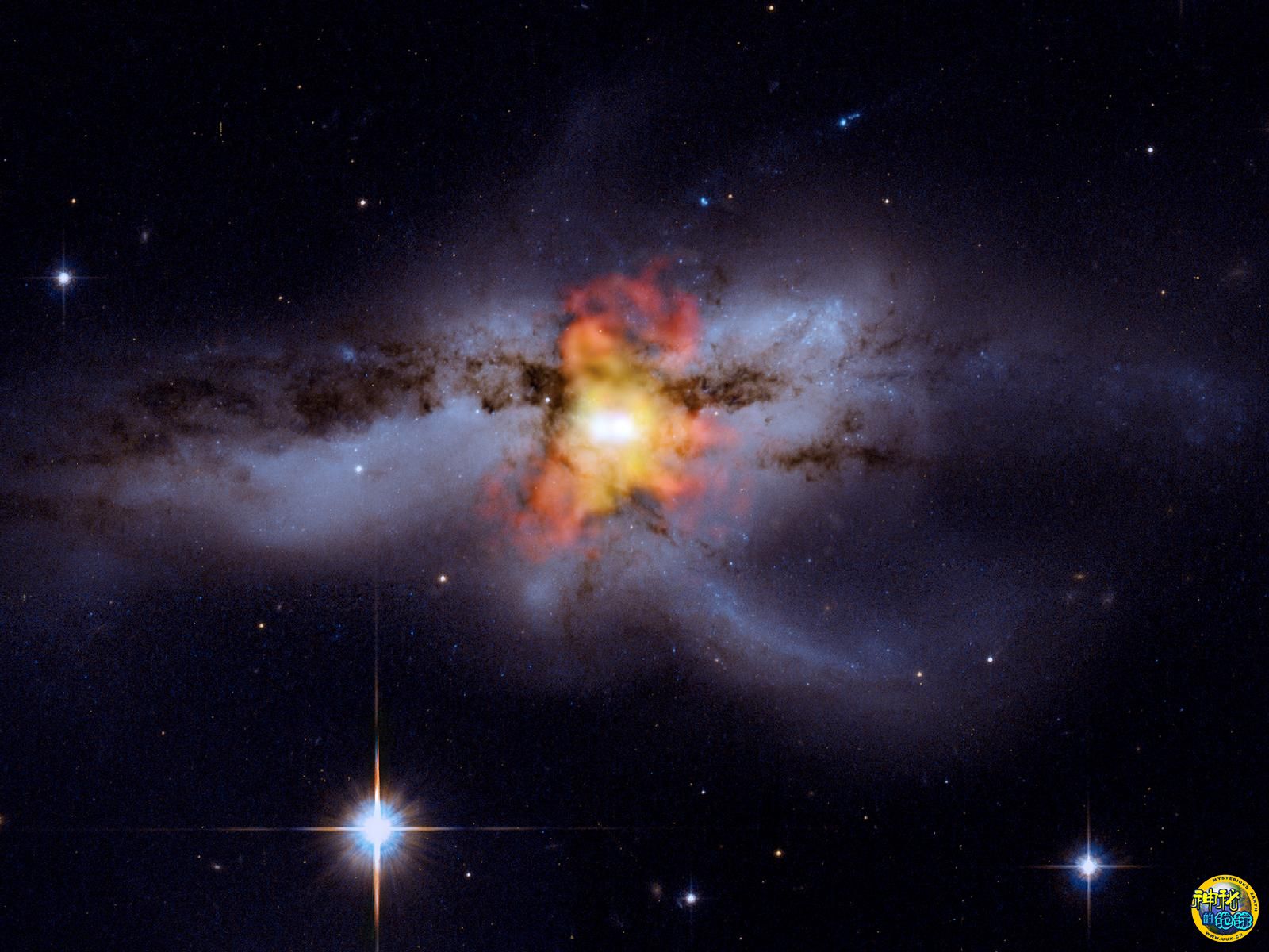 NGC6240星系两个超大质量的黑洞即将相撞 来源: 神秘的地球 时间:2009年10月28日 20:19 两个超大质量的黑洞即将相撞而形成一个更大、质量更重的黑洞,这两个黑洞均在NGC 6240星系内。 上一篇 下一篇 TAG: 黑洞 星系