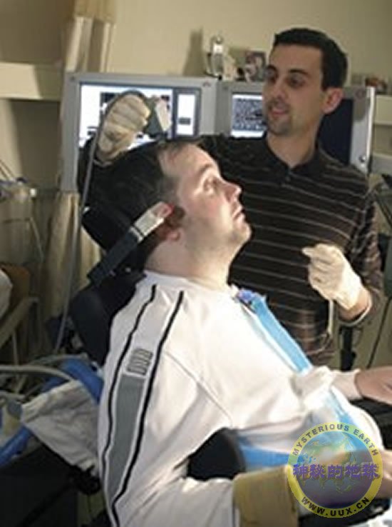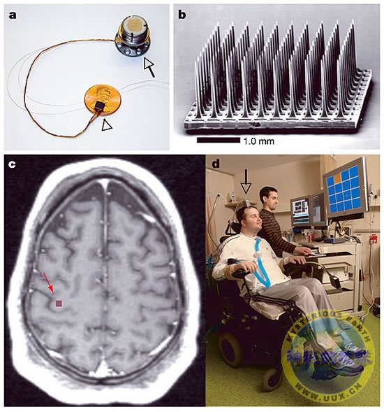 BrainGate飞行员临床试验的第一位参与者Matt Nagle。在颈部脊索损伤后,他的胳膊和腿不能动了。布朗大学神经科学系的研究人员与生物技术公司Cyberkinetics及其他三个机构的人员合作,发现与运动有关的信号可通过一个植入的BrainGate芯片从大脑向外传递,使患者能够驱动一个电脑屏幕光标,启动简单的自动装置。这种人造神经运动装置有可能为研制可以代替或恢复瘫痪患者丧失的运动功能的系统铺平道路。在这项进展之前,这种类型的工作主要是在猴子身上进行的。在最近的一例这种研究中,研究人员使这类装置的运动速度与当前的装置相比有了很大提高,从而使得研制可在临床上使用的脑机器接口的前景更加乐观。