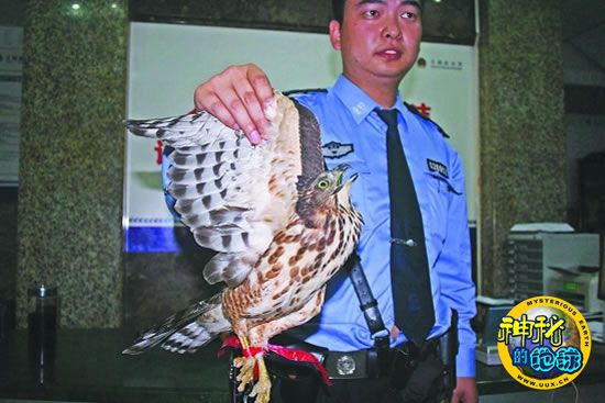 下午3点半,宁波市陆生野生动物救护中心工作人员冯一栋到月湖派出所领走这只鹰。冯一栋说,这只鸟属于食肉动物猛禽类,鹰科。身长40多厘米,年龄大约在一周岁左右,已属成年。学名叫凤头鹰,国家二级保护动物。