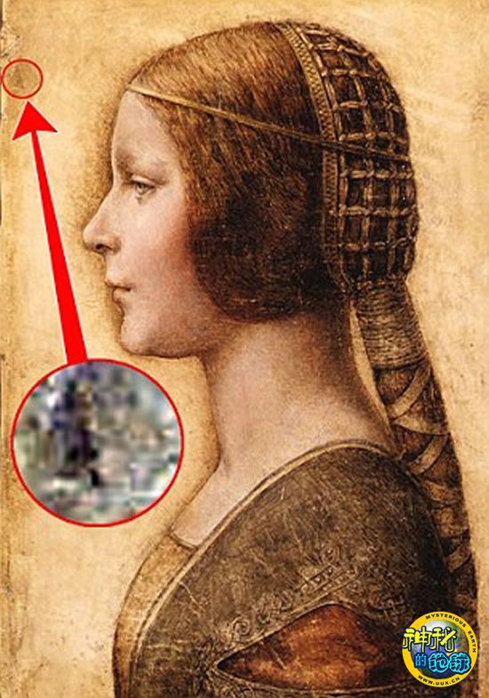 一名油画分析专家发现,“穿文艺复兴服装的女孩侧面像”的油画左上角的一处印记来自中指或食指指纹,同在梵蒂冈的达芬奇名作《圣-杰罗姆》上的指纹“高度相似”。
