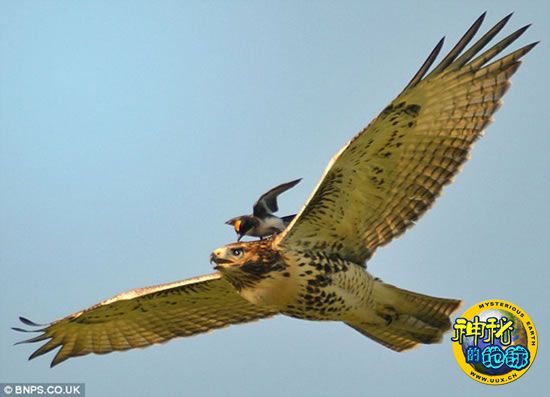 小小的必胜鸟啄得红尾鹰狼狈不堪