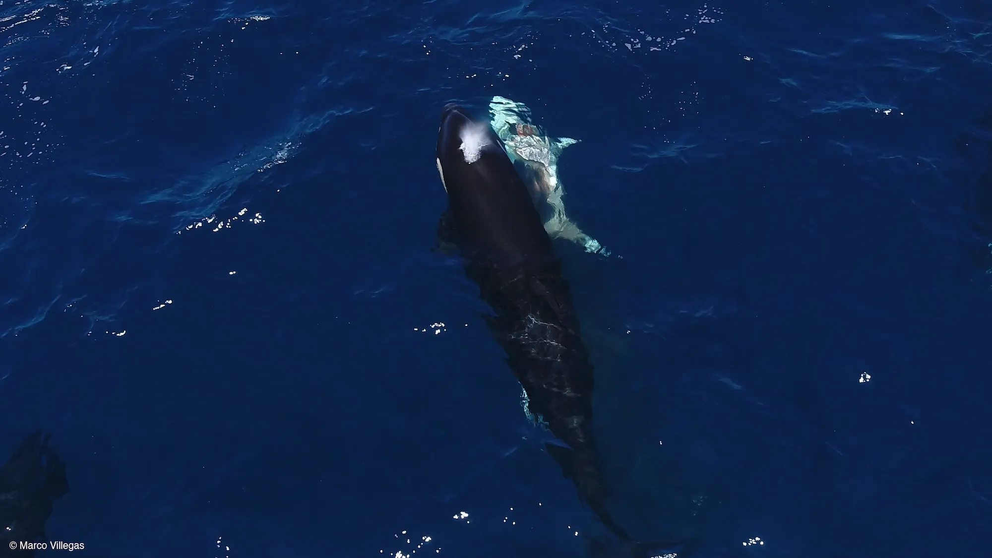 “短鳍领航鲸相当小且速度很快,所以我们真的必须选择时机,”高夫说。理想情况下,我们将标签贴在面向头部的气孔正后面,这样我们就可以看到任何深处的觅食。