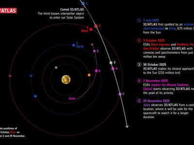 高速彗星3I/ATLAS于7月1日由小行星类地撞击最后警报系统(ATLAS)天文台发现。目前,它是银河系其他地方进入太阳系的第三个已知天体。这块太空岩石对地球没有已知威胁,距离也不会超过1.7亿英里。然而,它仅在10月飞行到火星1900万英里以内。