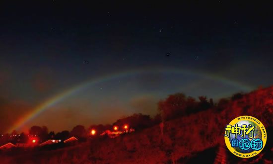 彩虹是由空中的雨滴像三棱镜那样折射分解阳光而形成的,所以虹通常在白天有太阳的时候出现。然而,令人惊异的是,夜间的天空,也会出现彩虹,不过不是白天的日虹,而是月虹。