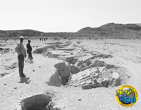 科研小组正在裂谷附近进行考察,这条裂谷长56公里、宽6米。