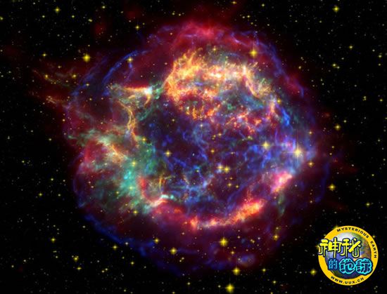 钱德拉X射线天文望远镜拍到的超新星爆发后的残余“仙后座A”照片