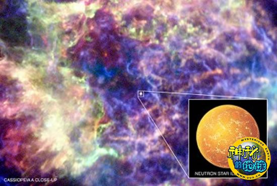 仙后座A质量是太阳的20倍,距离地球1.1万光年远,是一颗密度很高的恒星,距今330年前左右地球可以观测到它的爆发。仙后座A的核心密度相当高,直径为12.5英里(约合20公里),美宇航局钱德拉X射线天文望远镜在1999年首次观测到仙后座A核心爆发形成的超新星。
