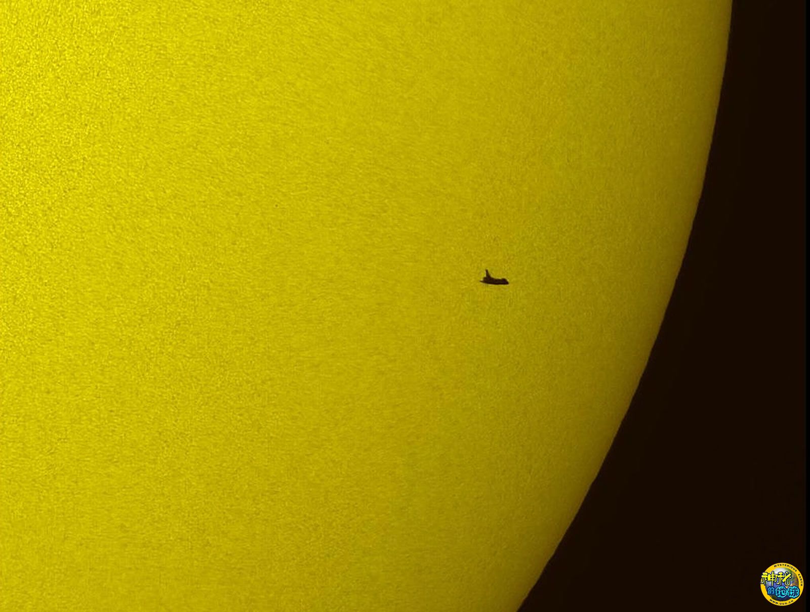 亚特兰蒂斯号航天飞机飞过太阳表面