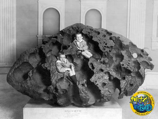 《纽约时报》刊登的这幅照片于1911年拍摄于美国自然历史博物馆。两个小男孩坐在威拉姆特陨石里面合影留念。