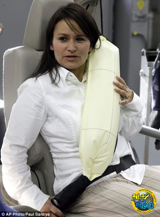 世界第一个充气式安全带,一旦发生车祸,它可以在40毫秒内做出反应,给予乘客更多的安全保护。