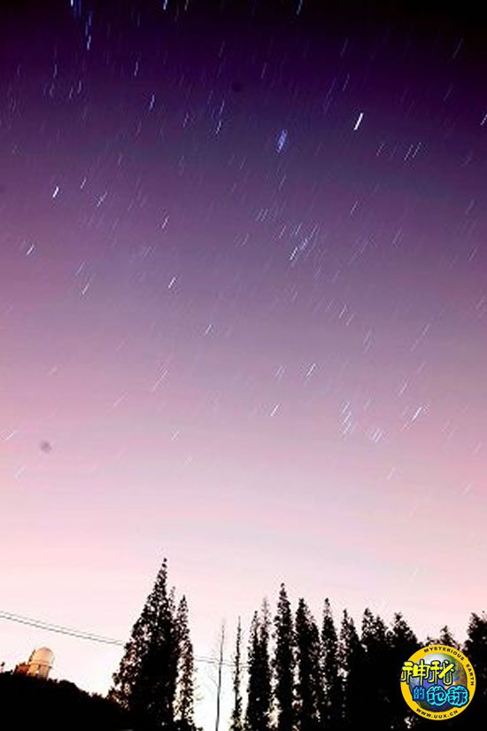 2005年10月9日凌晨,在佘山天文台拍摄到的流星雨。