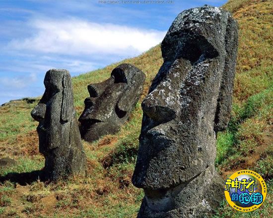 重达几十吨的石头是如何运到海边的呢?一般认为是搁在滚木上移到安放地点的,但小得可怜的复活节岛人烟稀少,既没有森林河流,也没有矿产良田,有的只是裸露的岩石和萋萋的荒草。既然连一棵树也没有,又何来滚木呢?