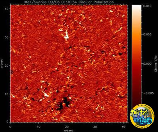 “日出”望远镜上的IMaX仪器不仅描绘了太阳表面特征,而且还使太阳磁场变成有形之物,易于人们看到。太阳磁场在偏振光里呈现出黑色或白色结构。
