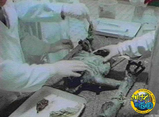 最惊人的还是外星人的验尸。它们看起来个子很小,皮肤是浅灰色的。身体很瘦,头像猴子,眼睛很深。一位美国不明飞行物研究专家发现,影片中对外星生命体的解剖过程是在莫斯科医学专科学院进行的。