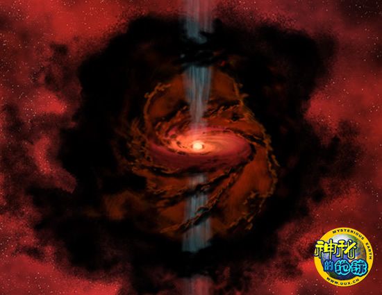 这幅图片并不是摇滚乐队“刺脊”的新专辑封面,而是画家创作的想象图,展示了一个宇宙“托儿所”内部可能呈现的景象。所说的“托儿所”是指一个恒星形成区,旋转的尘埃和气体云孕育出一颗颗恒星。