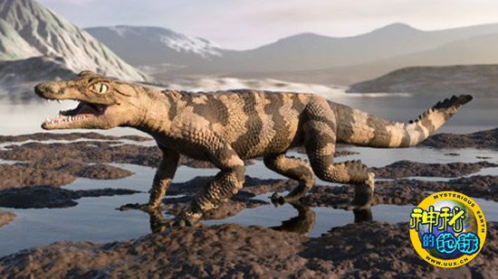 狗鳄的电脑效果图。狗鳄是一种以植物为食的古鳄鱼,它们拥有瘦长的腿部,这也表明它们可能是游泳专家。当遇到危险时,它们会敏捷地钻入水中逃跑。考古学家通过对此次新发现的史前鳄鱼的骨骼进行分析后发现,它们竟然都拥有快速奔跑的能力,和现代澳大利亚咸水鳄有许多相似之处。考古学家认为,鳄鱼祖先的这种奔跑能力主要是用来逃避捕食者的追击,同时也让它们的某些物种得以存活下来而不至于灭绝。在一些大面积灭绝的事件中,恐龙等古生物被完全灭绝,而诸如美国鳄、凯门鳄等多种鳄鱼之所以能够存活下来,都得益于这种快速奔跑能力。