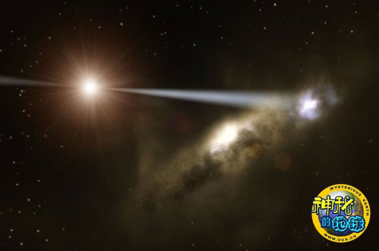 非但没有发现有星系环绕,埃尔伯兹的科研团队发现黑洞正向临近星系喷发能量和物质。这种能量和物质“输送”催生了恒星的生成。天文学家也观察到临近星系大量的恒星的诞生:那一区域每年会诞生350颗新恒星。