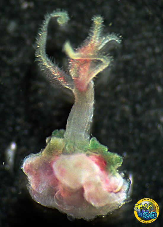美国海域发现数种啃噬鲸鱼尸骨新蠕虫 来源: 神秘的地球 时间:2009年12月04日 10:07 5.球状根部 球状根部(图片提供:Greg Rouse, MBARI ) 新发现的海底蠕虫可能通过球状根部吸食骨骼中的营养物,比如图中这个尚未命名的新蠕虫,科学家在2009年将其从吸附的骨骼上分离用于研究。威利吉恩霍克说:“根据我们的研究,它们没有肛门,没有嘴,也没有消化管,所以我们认为根部是它们用以觅食的唯一渠道。”在正常条件下(即牢牢吸附于骨骼时),海底蠕虫的根部清晰可见。 上一页123456下一页 上一篇 下一篇