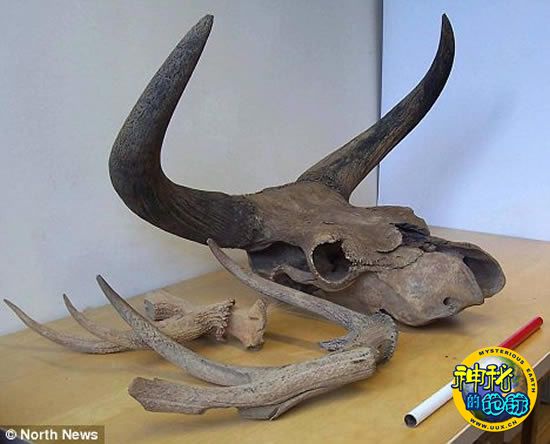 这些骨骼属于一种古代欧洲野牛,7500年前英国各地都有这种牛。欧洲野牛站立时,从脚到肩部的高度是6英尺(1.83米),生活在英国土地上的这种牛大约是在4000年前走向灭绝。经过对这个头骨进行放射性碳测定,确定它生活在公元前5670年到5520年间,当时英国北部很少见到四处为家的猎手。