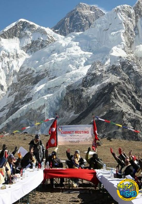 尼泊尔是坐落于“世界屋脊”喜马拉雅山中段南麓的一个亚洲小国。随着气候变暖,喜马拉雅山冰川融化加速,已导致该国气候异常,自然灾害频发。为了引起全球对冰川融化问题的关注,尼泊尔于2009年12月4日在海拔5164米的一个珠峰营地上召开全世界最高的内阁会议,这次会议的主要议题是讨论尼泊尔总统本月将在联合国哥本哈根气候大会上演讲的内容。据尼泊尔内阁环境部长塔库尔-沙尔玛介绍说,“由于冰川融化,在尼泊尔境内出现了大量的冰川湖泊,它们随时都有溃决的危险。由此引起的洪水频发、山体滑坡、气候变化、干旱少雨等其他恶劣影响一直都是近些年来困扰尼泊尔的最大问题,这都对我们的农业体系产生很大的影响。尽管我们不是气候变化的始作俑者,但我们却深受其害。”