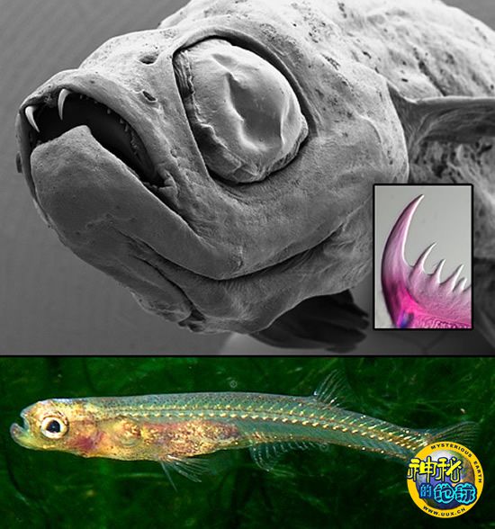 美国国家地理评选出2009年十大最受欢迎新物种 来源: 神秘的地球 时间:2009年12月10日 11:22 2.吸血鬼鱼 吸血鬼鱼 在2009年宣布的新发现的物种中,图片中这条微小的雄鱼绝对是最令人毛骨悚然的一个。由于长有好似吸血鬼的尖牙,这种鱼被形象地称之为“Danionella dracula”(达尼埃拉·德拉库拉,西方传说中吸血鬼的名字)。吸血鬼鱼是2009年3月在缅甸发现的,它的“尖牙”实际上并不是真正的牙齿。据信,它们在大约5000万年前就与牙齿说“再见”。研究人员认为,雄性吸血鬼鱼利用长长的尖牙在求偶竞争中互相搏斗。 上一页12345678910下一页 上一篇 下一篇
