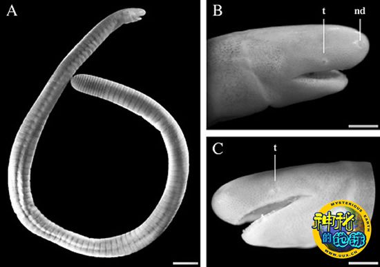 美国国家地理评选出2009年十大最受欢迎新物种 来源: 神秘的地球 时间:2009年12月10日 11:22 3.巨型无肺蚓螈 巨型无肺蚓螈 蚓螈是一种类似蚯蚓的两栖动物。研究人员11月表示,即使没有鼻孔、肺部或者腿,一种新发现的巨型蚓螈物种仍可以在陆地上生存下来。据悉,这是迄今为止发现的另一种能够在无肺情况下生存的蚓螈。通常情况下,拥有肺部是将两栖动物与鱼类区分开来的一个关键特征。直到最近,科学家仍认为蝾螈是唯一一种没有肺的两栖动物。1995年,研究人员发现了第一种无肺蚓螈。2008年,另一支研究小组报告称发现一种体型微小的无肺青蛙。 上一页12345678910下一页 上一篇 下一篇