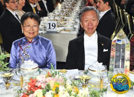 华裔科学家高锟与夫人在晚宴上