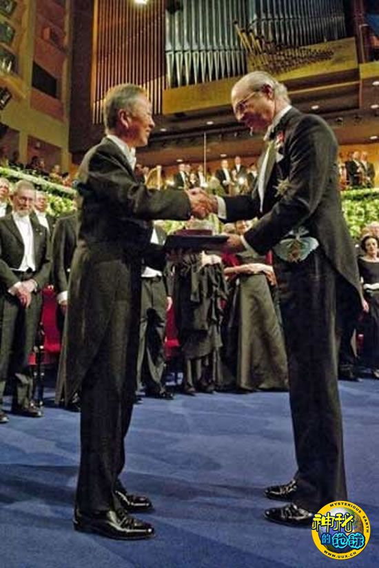 尽管高锟因健康原因8日未能在斯德哥尔摩大学进行演讲而由夫人黄美芸代替,但他今天亲自出席颁奖仪式,从卡尔十六世国王手中接过了这一殊荣。