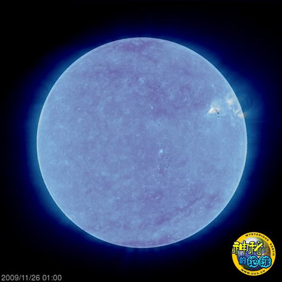 美国国家地理一周太空图片 来源: 神秘的地球 时间:2009年12月14日 14:49 2.太阳呈现安静的蓝色 太阳呈现安静的蓝色(图片提供:SOHO/STEREO/NASA ) 这是一幅由磁图像和紫外图像合成的静态图,来自太阳与太阳风层探测器网站12月4日公开的一段视频,图片中的太阳呈现出安静的蓝色。通过比较视频中的图像,天文学家能够了解两个可能无法被探测到的太阳活跃区域的细节。 上一页12345下一页 上一篇 下一篇