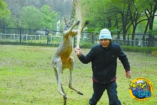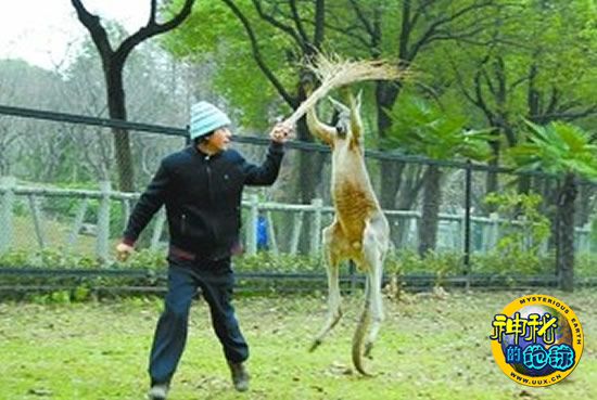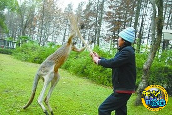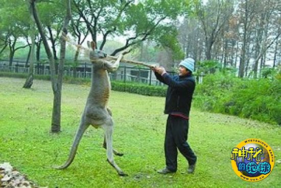 武汉动物园袋鼠击退饲养员