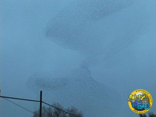欧洲椋鸟群有如一大片黑压压的乌云,遮住了半边天空。