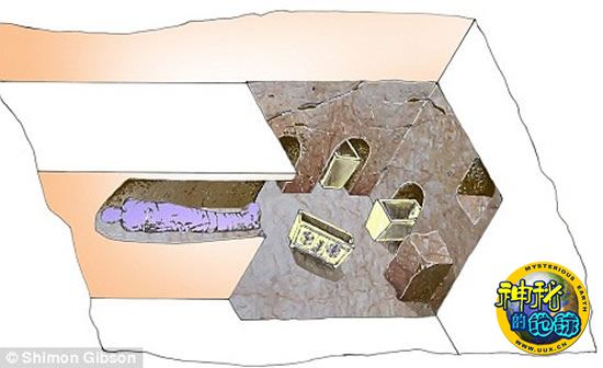 发现古尸的墓室结构分布图。考古学家认为,之所以将墓室封死,是因为墓主死于肺结核