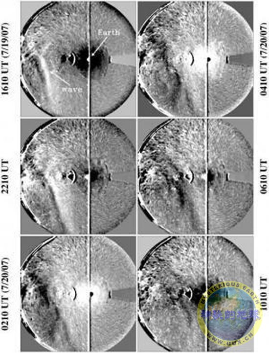 美国“太阳日冕与日光层对地关系”研究小组(SECCHI)近日称,他们最近利用美国宇航局STEREO太阳探测器,首次成功观测并拍摄到了太阳风扫过地球的照片。