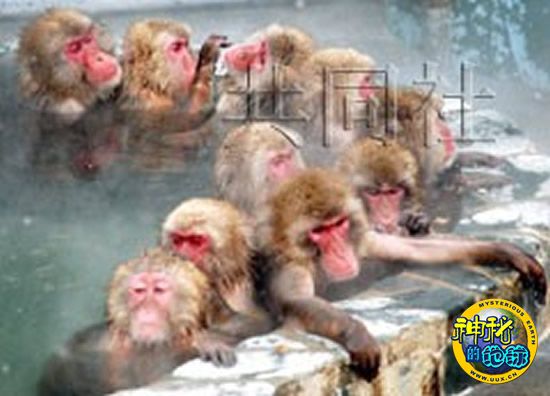 猴子们泡在热气腾腾的温泉里互相梳毛,十分悠闲,有的猴子舒服得昏昏欲睡。