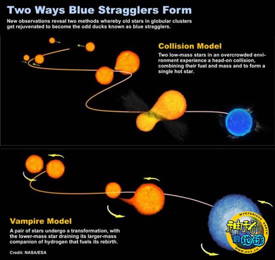 “吸血”和碰撞是球状星团中蓝离散星永葆青春的两种机制