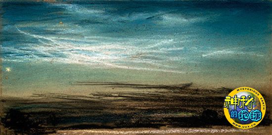 夜光云奇景 来源: 神秘的地球 时间:2009年12月25日 15:57 7.英国上空夜光云 英国上空夜光云(图片提供: SSPL, Getty Images ) 火山喷发会向高层大气喷射水汽,同样可以导致夜光云的形成。1883年,印度尼西亚喀拉喀托火山喷发使得全球广大地区的气候发生剧烈变化。英国画家威廉姆-阿斯克罗夫特(William Ascroft)记录下了这种被认为同喀拉喀托火山喷发有关的现象,比如这张他在1885年绘制的英国上空的夜光云速写,表现出一种混沌状态。 新浪环球地理(秋凌) 上一页1234567 上一篇 下一篇